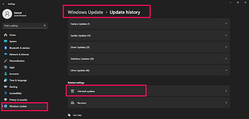 If it’s a Windows update that causes the error, roll it back with these steps: