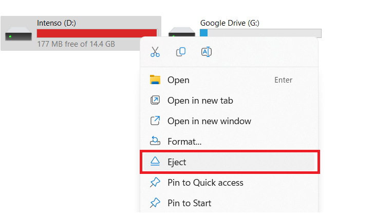 If you encounter a similar issue, try updating your drivers and checking for file system errors ( Properties > Tools > Check ). You may have to reformat the drive to resolve the issue.
