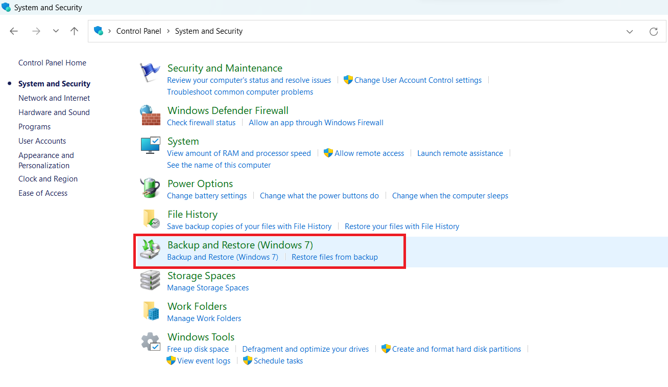 - Click on Backup and Restore (Windows 7).