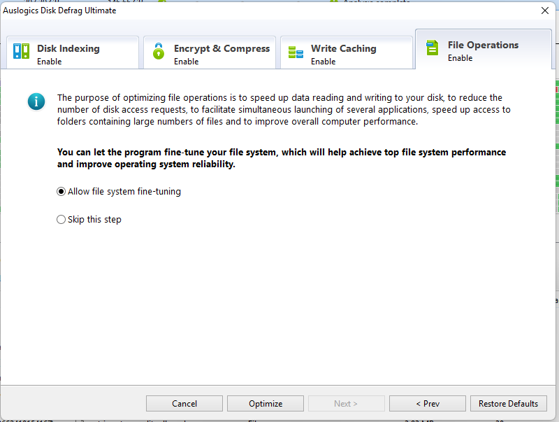 - Allow file system fine-tuning to speed up access to files and folders and improve PC performance.