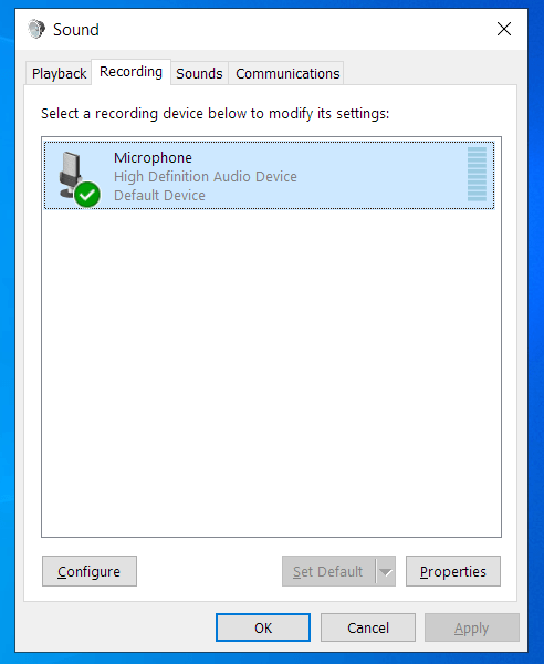 Note: When you get to step 6, you have the option of choosing your microphone as the default communication device. In that case, communication platforms, such as Skype or Zoom, will use that microphone during video and audio calls, but the system will use another recording device on other occasions.