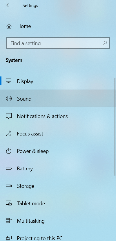 - Click on Sound from the list of options.