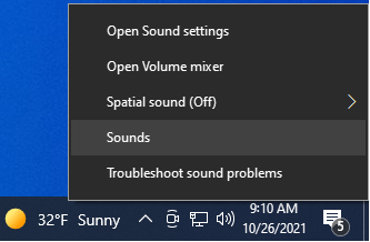 - Right-click on the Sound icon (the speaker) in the bottom-left corner of your screen (the system tray or notification area).