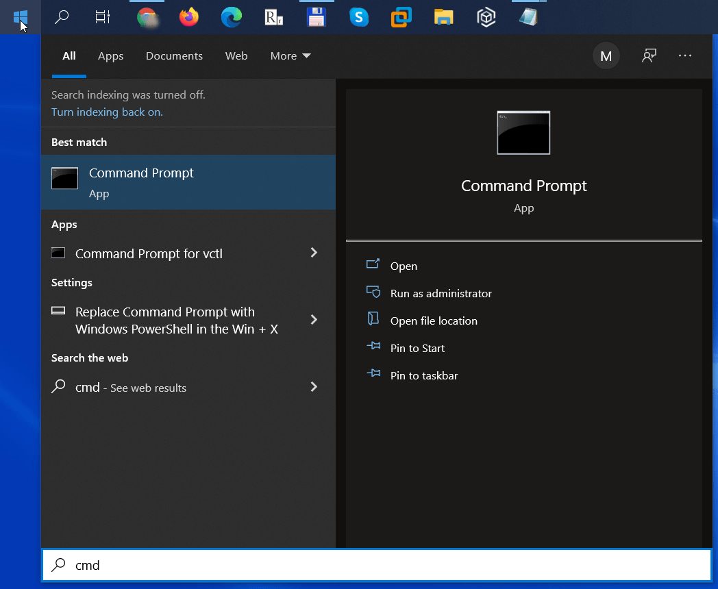 Step 1: Click the Start menu button in the bottom-left corner of your screen and type cmd into the search box; then select Run as administrator.