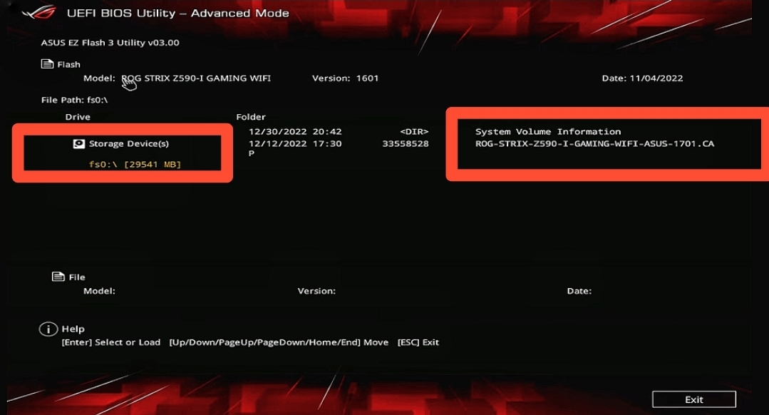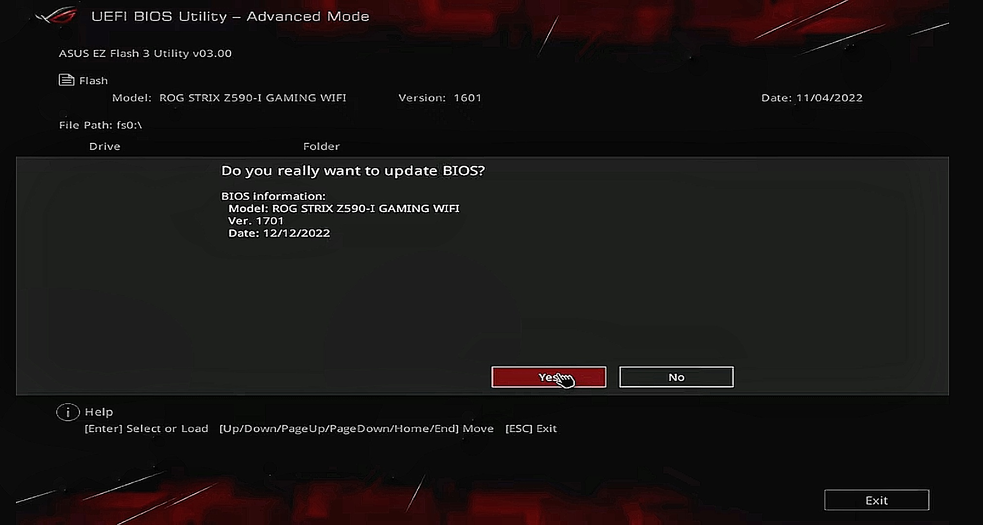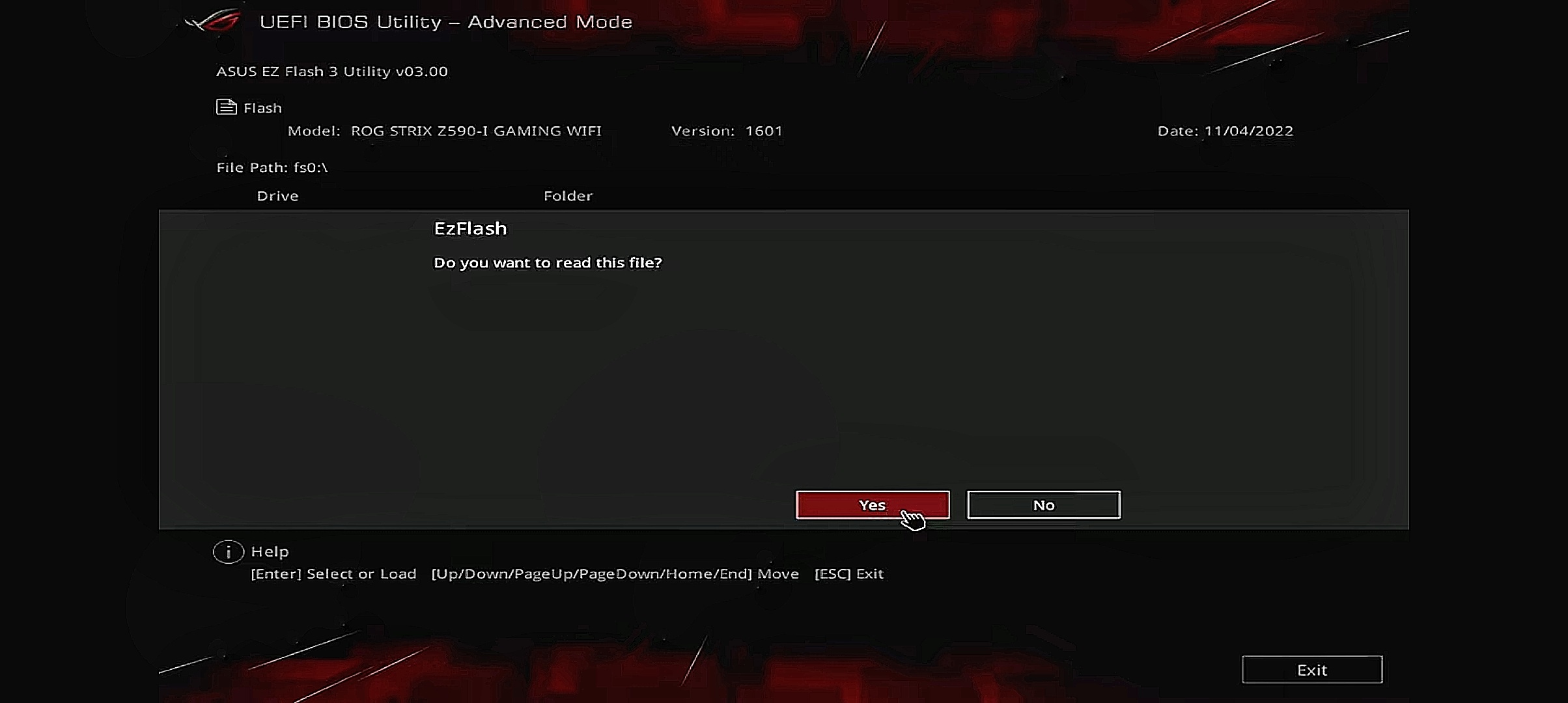- Use the arrow keys on your keyboard to navigate the BIOS menu. What you’re looking for is the BIOS update utility, otherwise known as the flash utility tool. This differs depending on your motherboard manufacturer. But once located, you’ll find your USB drive and the file it contains.
