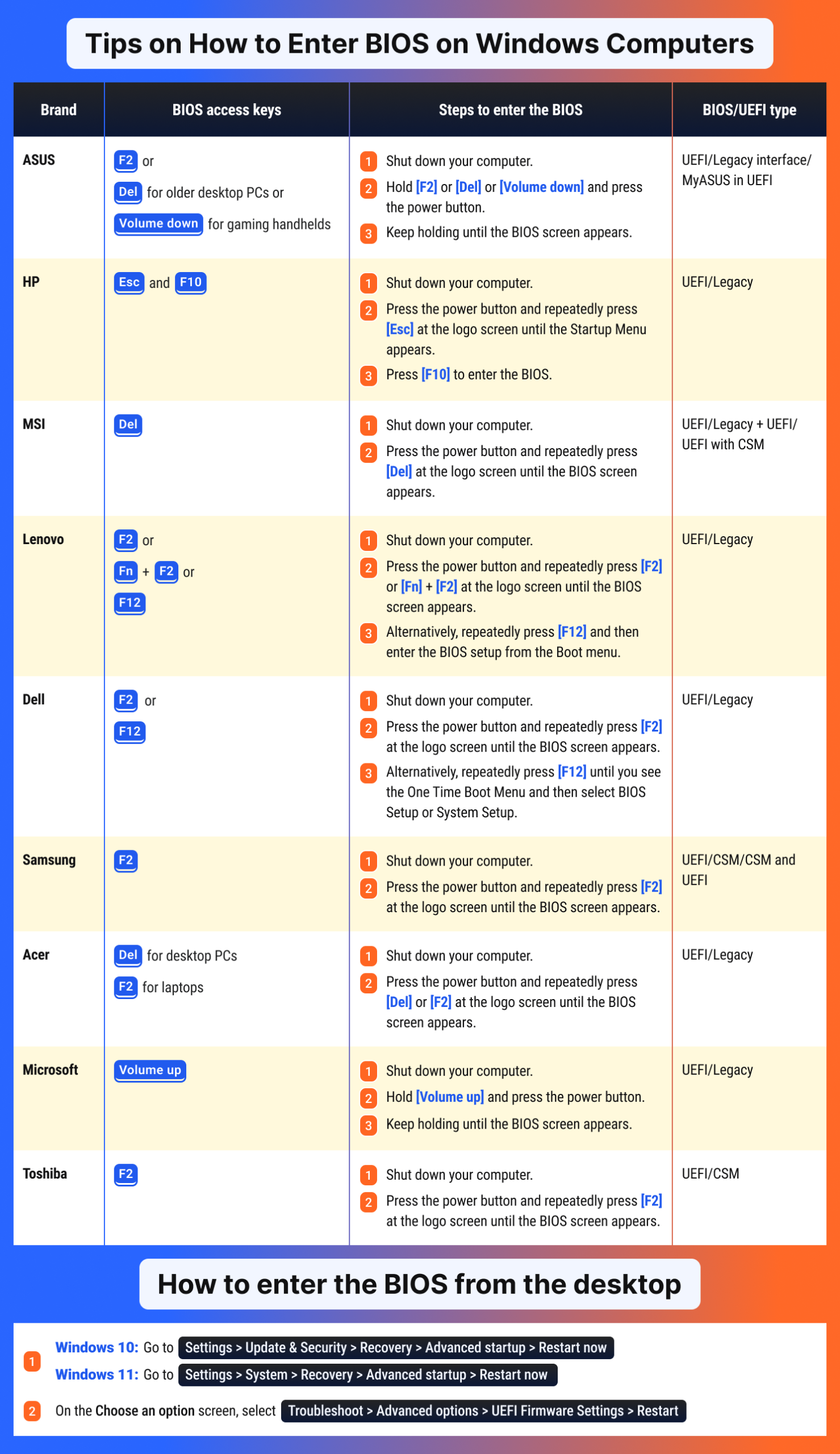We will cover the general process for updating BIOS using a USB drive. Afterwards, consult the table below to find the specialized process for your specific PC brand or motherboard.
