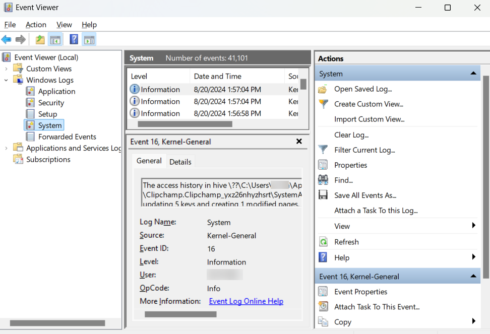 - Double-click the event log and go to the Details tab to see more information.