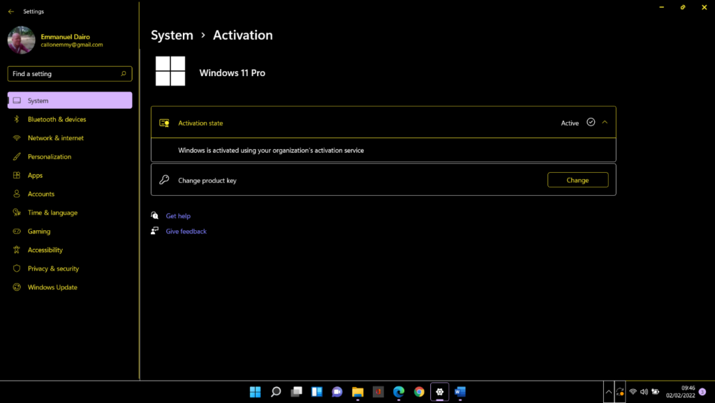 You’ll find your activation status here. This tells you whether or not you have a product key.