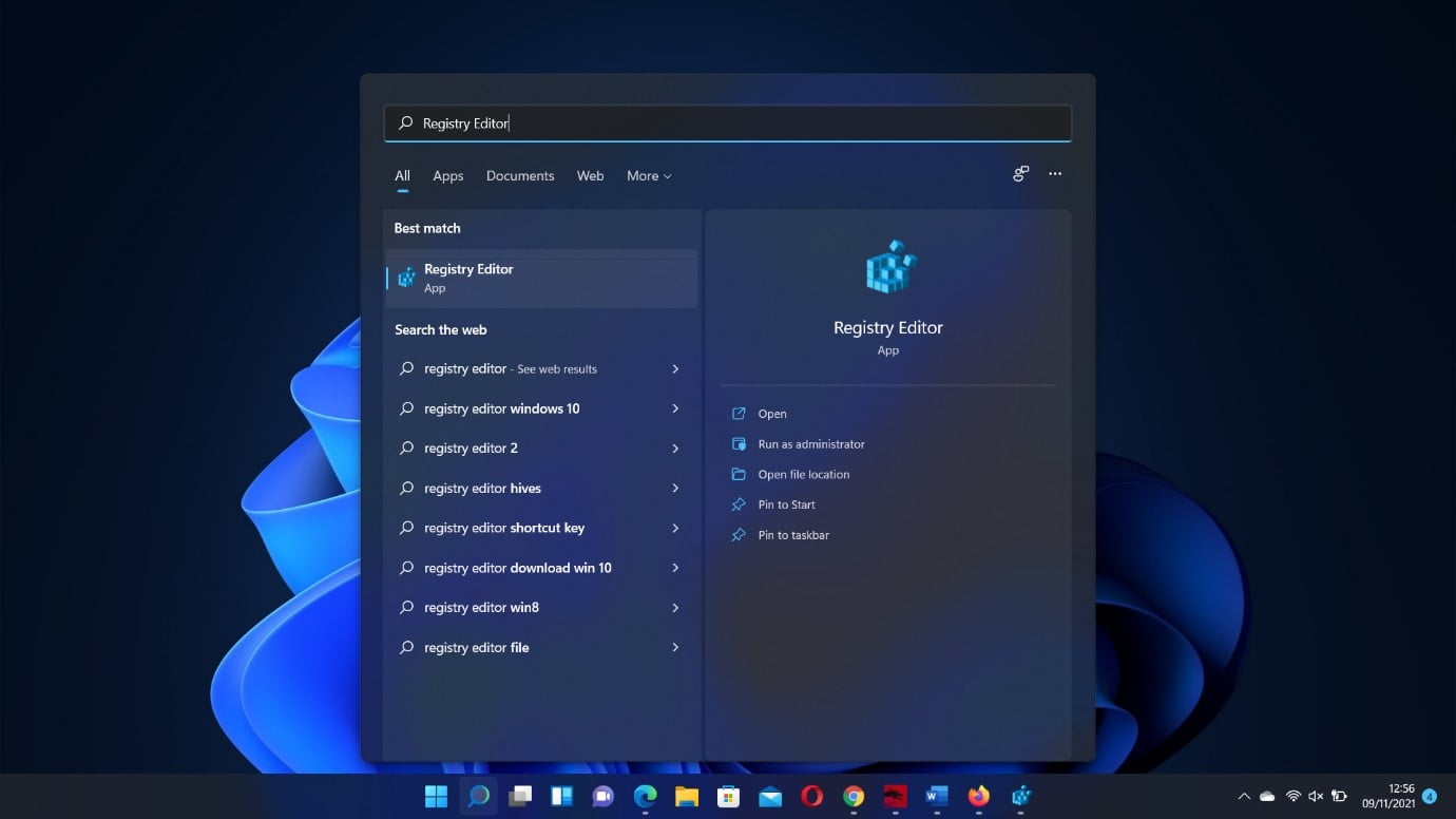 - Tap the Windows keyboard button and type “registry editor.”