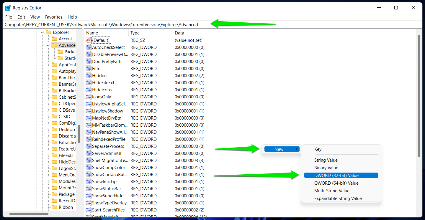 Computer\HKEY_CURRENT_USER\Software\Microsoft\Windows\CurrentVersion\Explorer\Advanced