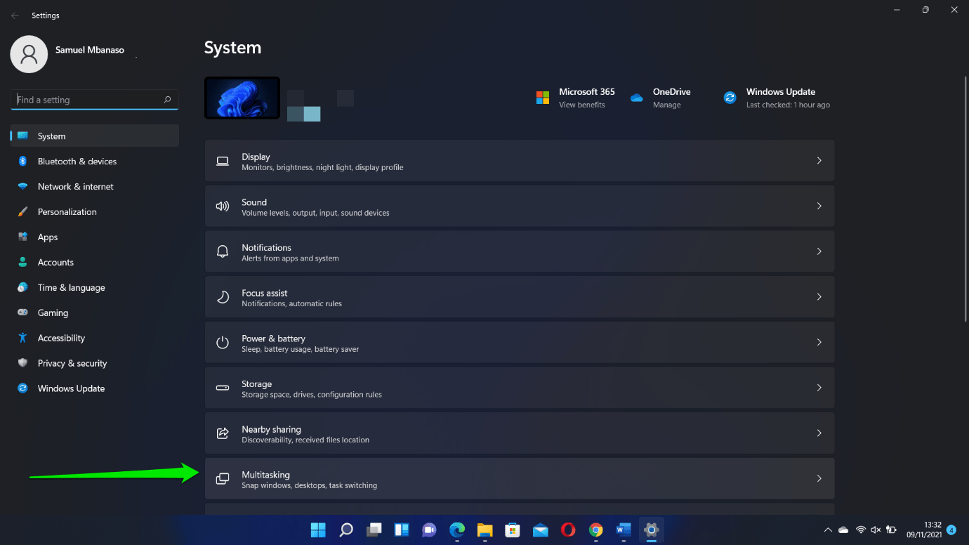 - Toggle the switch for Snap Windows to On when you get to the Multitasking page.