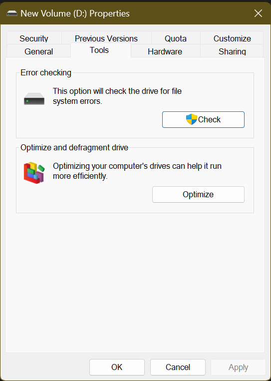 If you’re using Windows 10, the built-in Windows Check Disk tool makes it easy to check your HDD’s health. Also known as CHKDSK utility, it scans and repairs your hard drive errors, ensuring it keeps running smoothly.