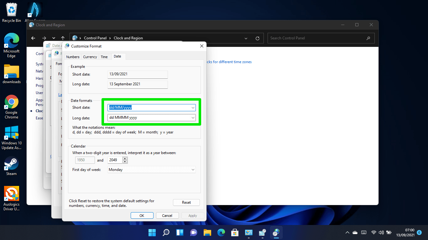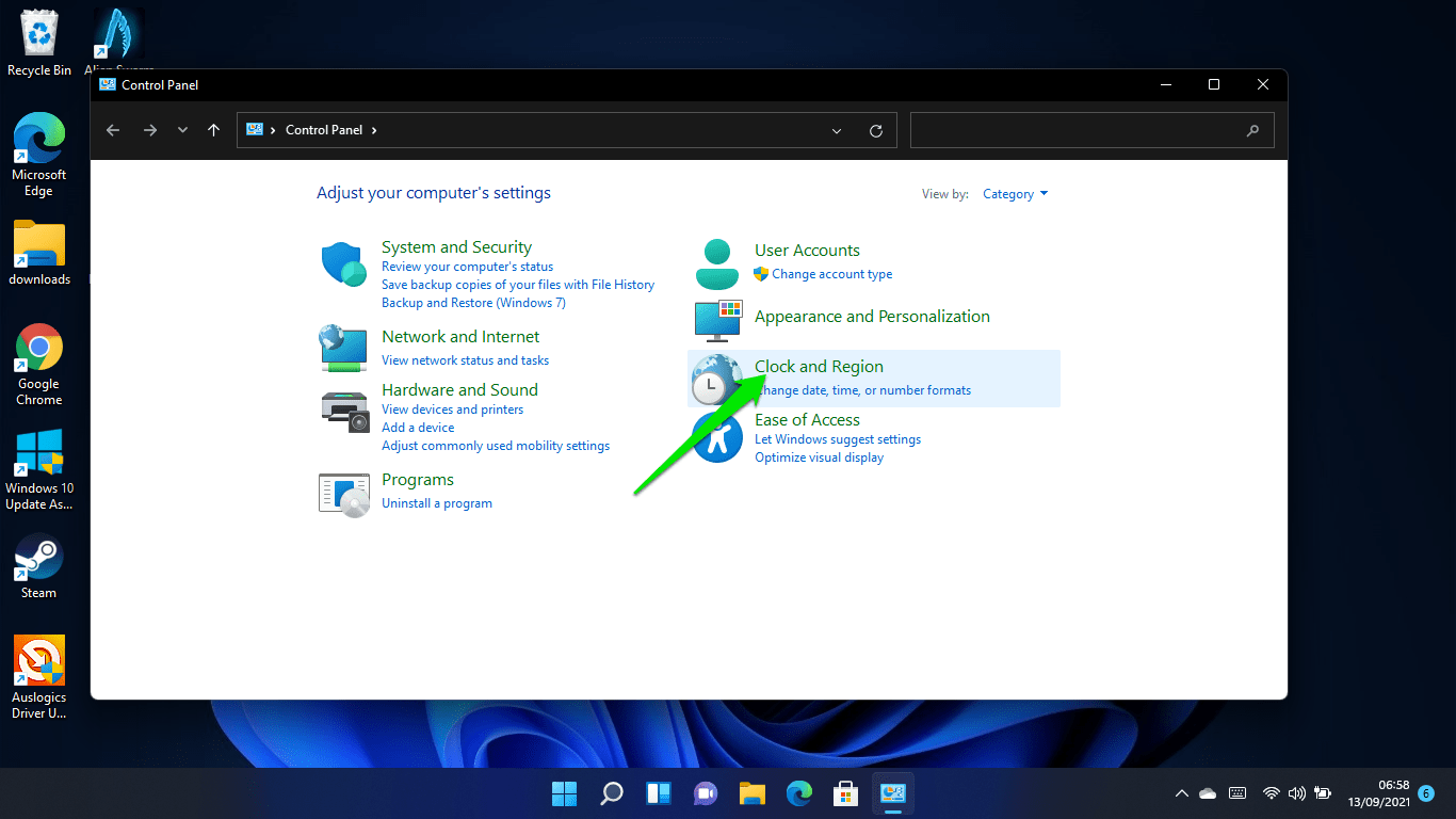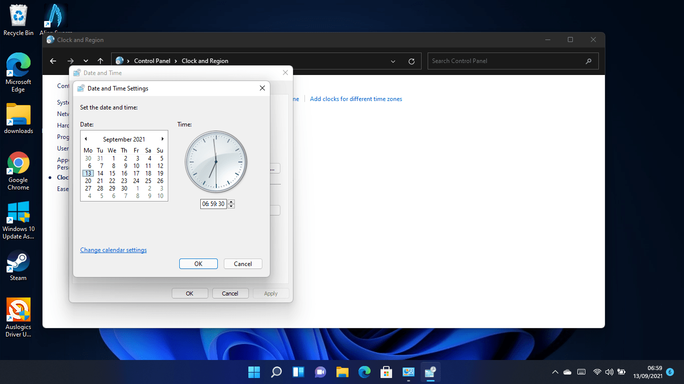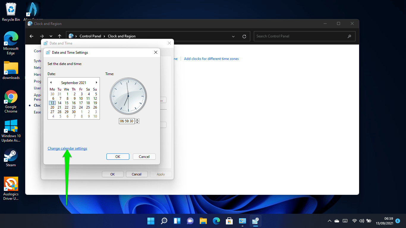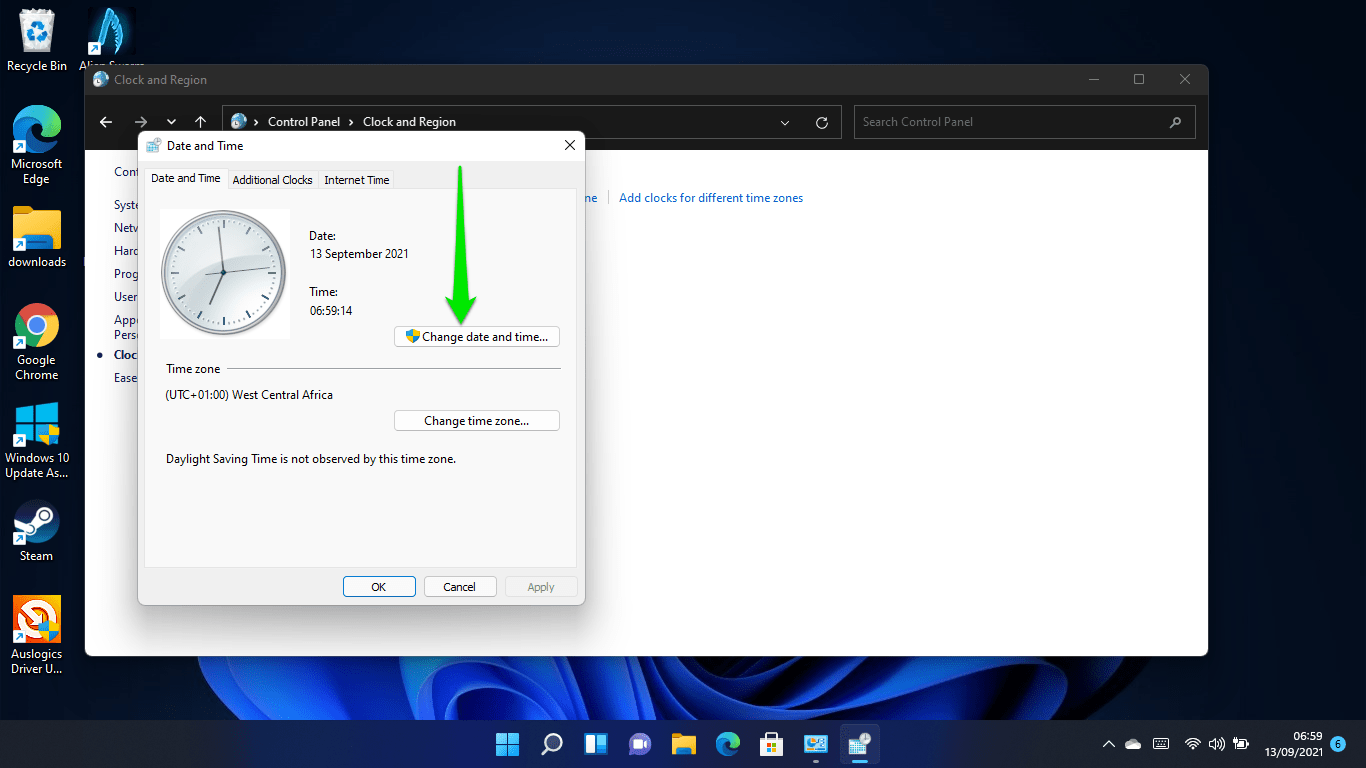 How to change the time and date in Windows 11 using the Control Panel