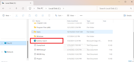 Windows + Eto open File Explorer and check your drive C. You’ll find the battery life report saved as an HTML file.