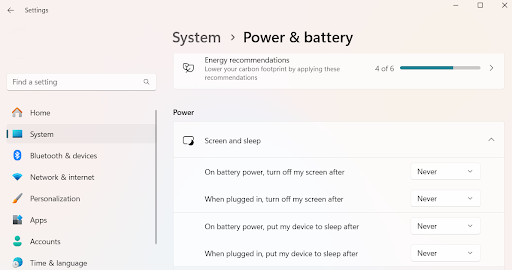 Deactivate as many of your laptop’s automated power-saving features, especially the hibernation and sleep features. You can find it in your System Settings’ “Power & battery” section.