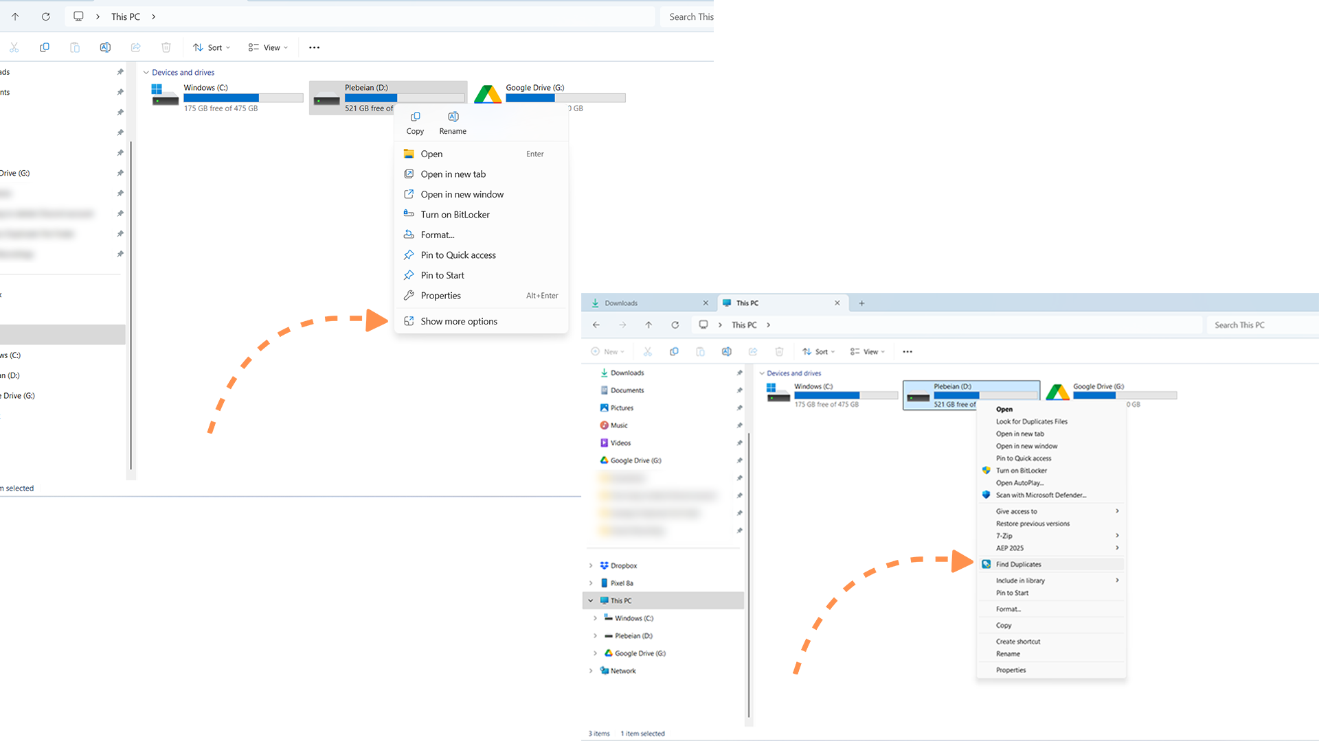 The program allows you to add a Scan for Duplicates option in the Windows context menu. That way, you can right-click a drive or folder to check whether it contains duplicates. This feature also works with external storage devices and synced cloud drives and folders.