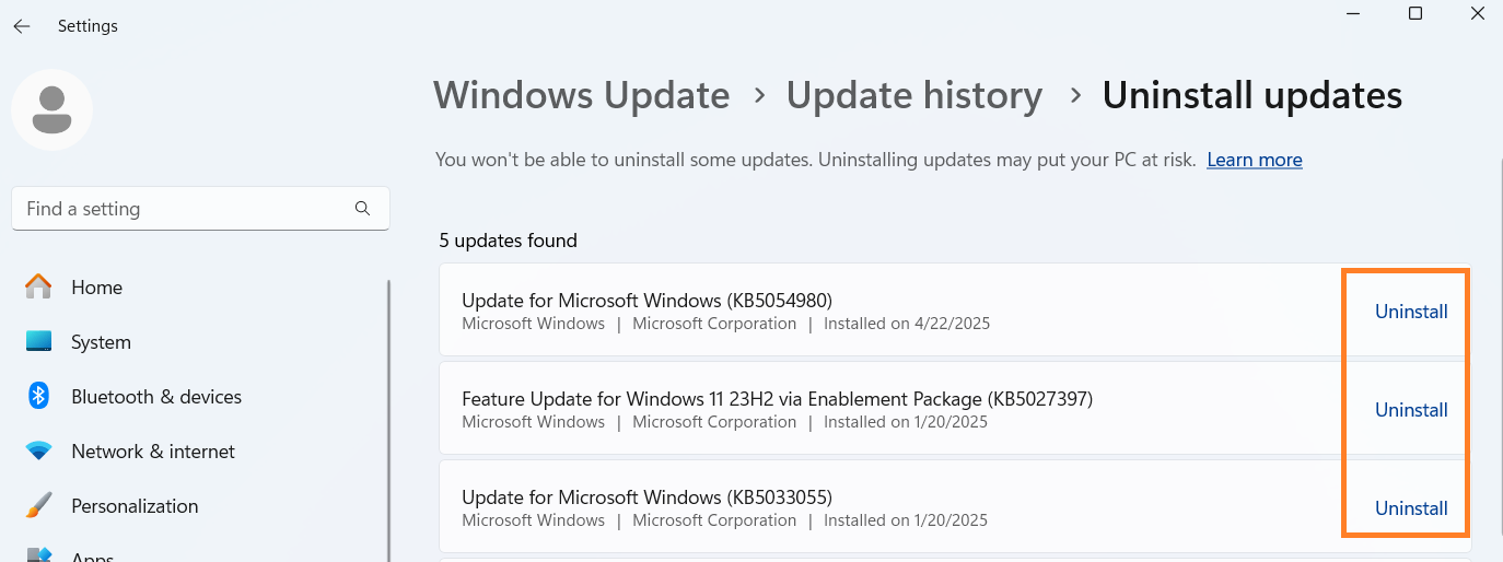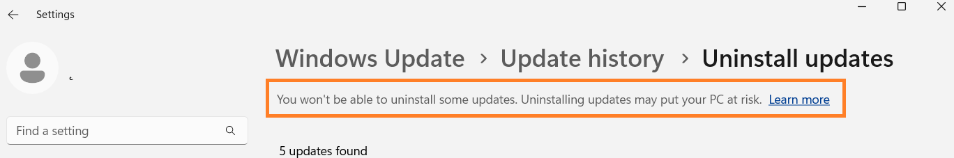 Don’t worry if you see the message, “You won’t be able to uninstall some updates. Uninstalling updates may put your PC at risk.” If you can’t delete a particular update, look up its update number online to see if others have found a workaround.