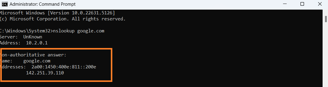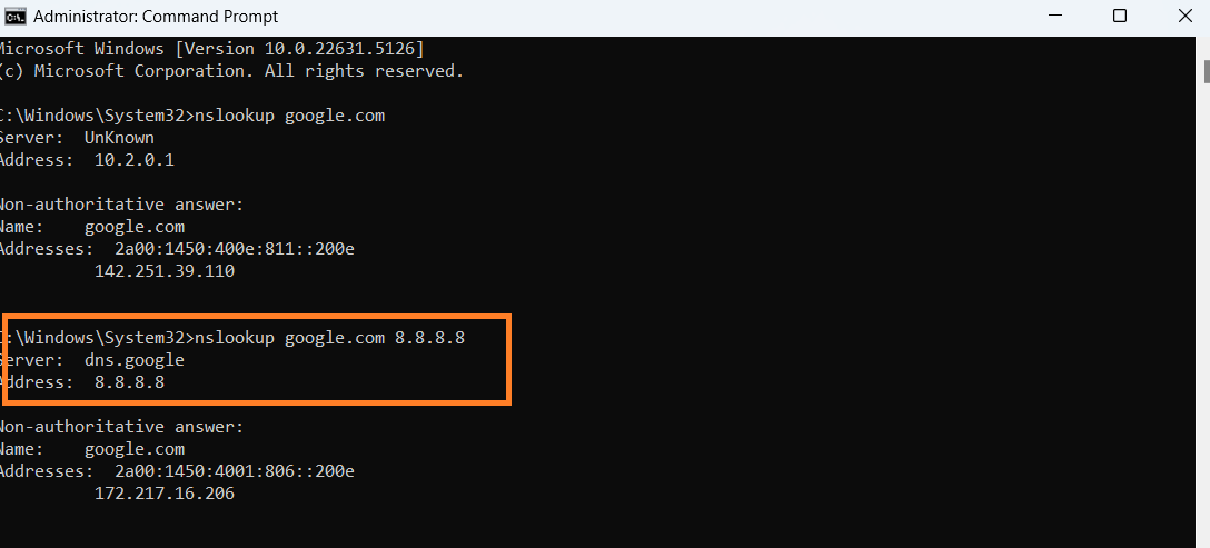 These commands let you see whether the issue is with your DNS server, your internet connection, or even a specific domain. It’s a fast and reliable way to narrow down the root cause without having to change settings blindly.