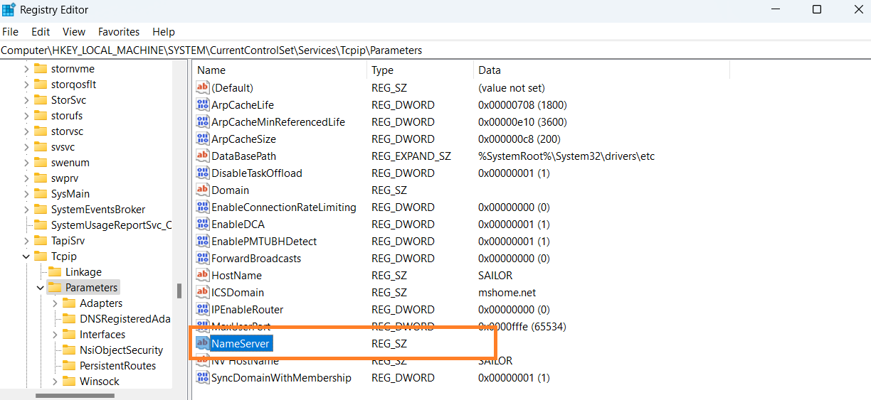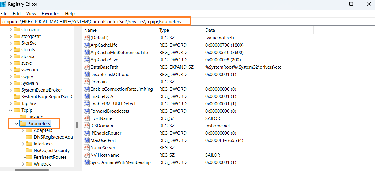 - Navigate to: HKEY_LOCAL_MACHINE\SYSTEM\CurrentControlSet\Services\Tcpip\Parameters