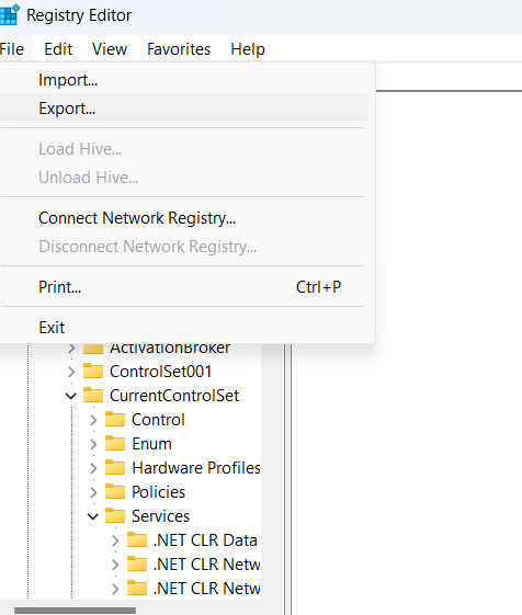 - Back up your registry before proceeding (yes, it’s really important). Go to File, select Export, and choose your preferred destination. Make sure All is selected under Export range.