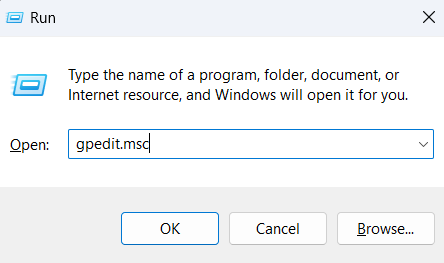 Windows + R, type gpedit.msc, and pressEnterto open the Local Group Policy Editor.