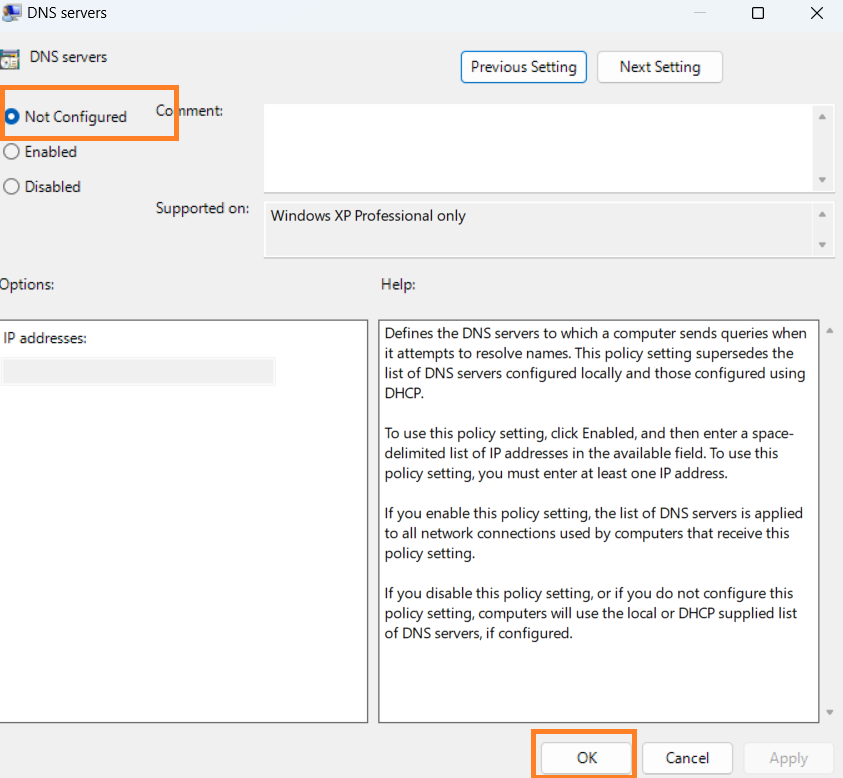 If you’ve tweaked DNS or network behavior via Group Policy or the Windows registry in the past, for example, to optimize speed or apply custom DNS rules, these settings might be backfiring now. Conflicting or overly restrictive settings can stop your system from reaching out to DNS servers the right way. The best way is to reset those areas to default and restore functionality. Here’s how to go about it: