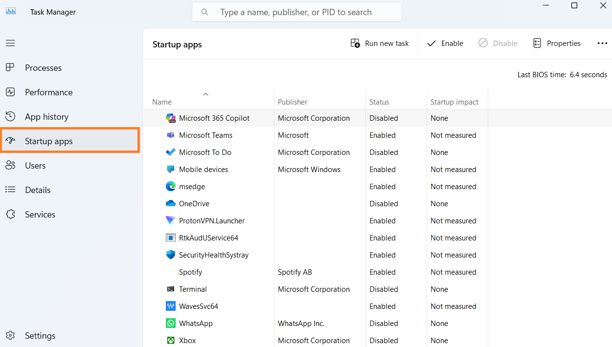 Ctrl + Shift + Esc), go to the Startup apps tab, and disable unnecessary apps that might affect networking.