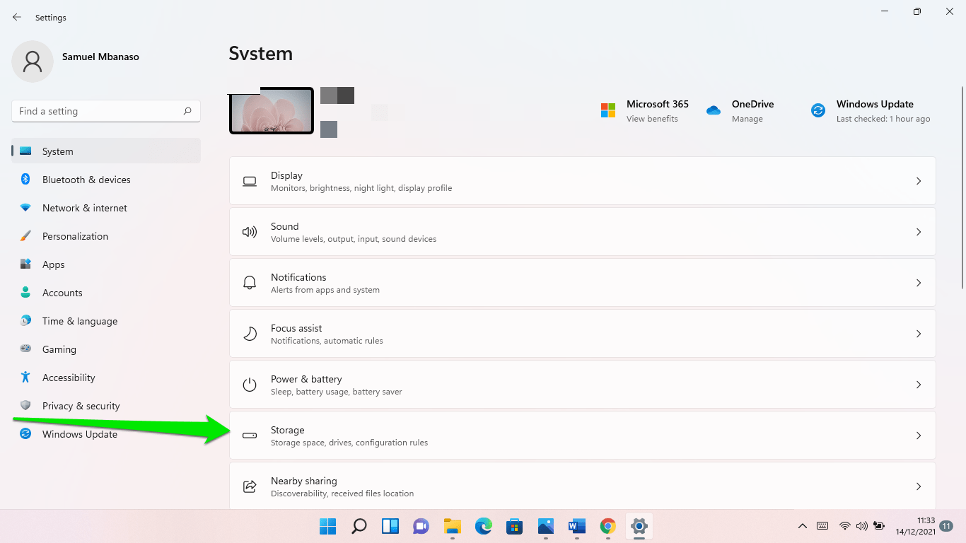 - Windows will automatically calculate your temporary files once the Storage interface appears.