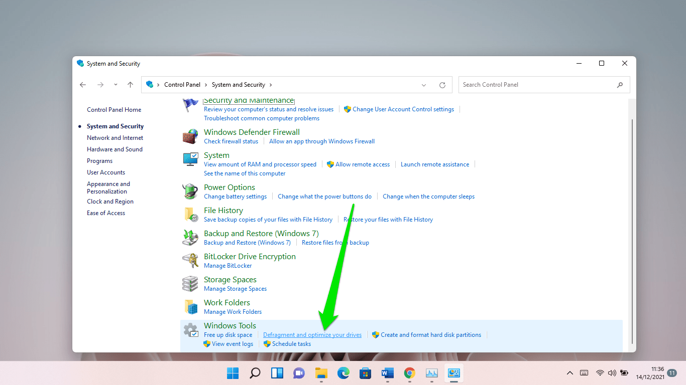 - Scroll down to Windows Tools once the System and Security window shows up and click on “Defragment and optimize your drives.”