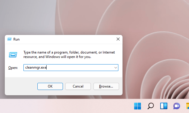 - After the Run dialog window opens, type “cleanmgr.exe” and tap the Enter button on your keyboard.