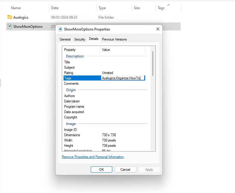 You can take your file organization a step further by tagging associated files before moving them into their respective folders. Windows has a built-in feature for tagging files. All you have to do after selecting your files is to: