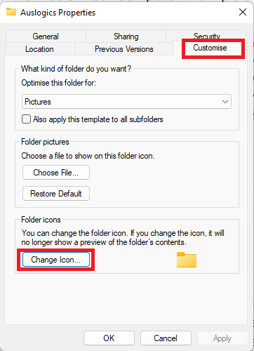 However, Windows has a feature for setting custom icons for your folders. Simply right-click on a folder, click on Properties, and head to the Customized tab. Next, click on the Change Icon button to pick an icon that will represent the folder.