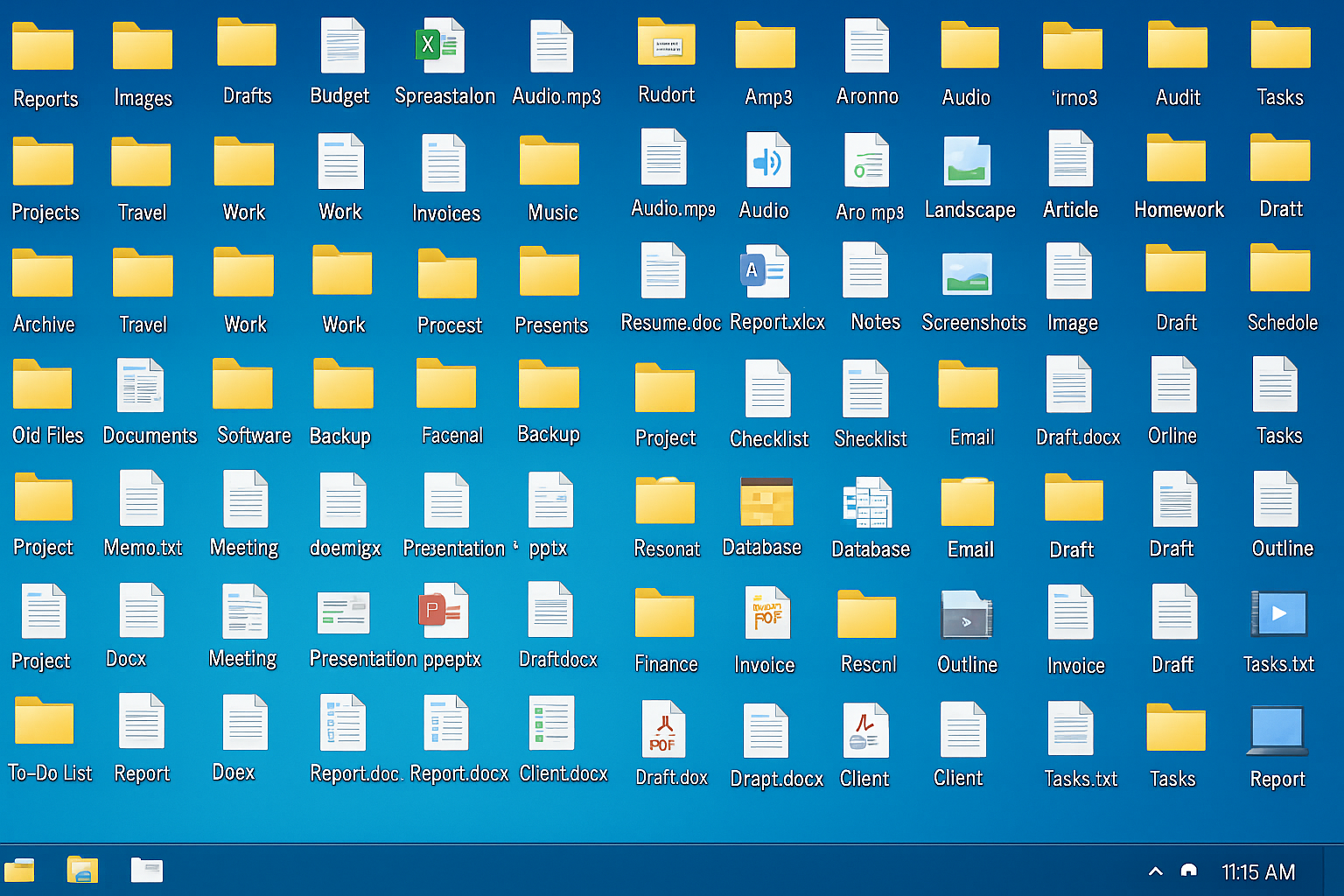 Your desktop might even look something like the image below, and every other location on your computer may be similarly disorganized, littered with stray files and folders.