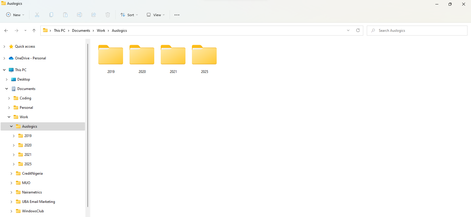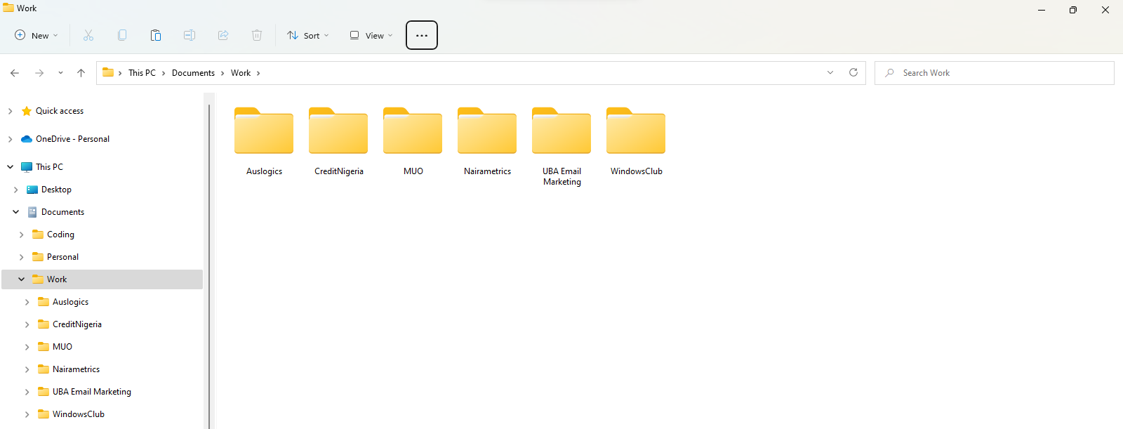 For example, I have created my main folders based on activity as follows: Work, Personal, and Coding. These three folders contain all the files that I have saved on my computer, including images, videos, photos, documents, and even sorted downloaded files.