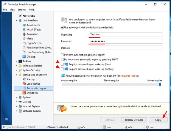 We suggest you to use TweakManager utility which will help you to setup automatic logon. To start it you should: