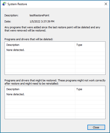 - Pick a restore point and click on the “Scan for affected programs” button.