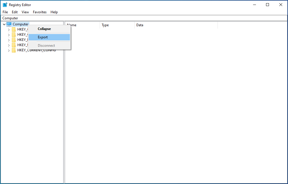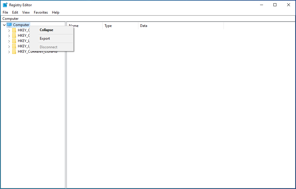 - When the Registry Editor opens, select Computer on the left pane and then right-click on it.