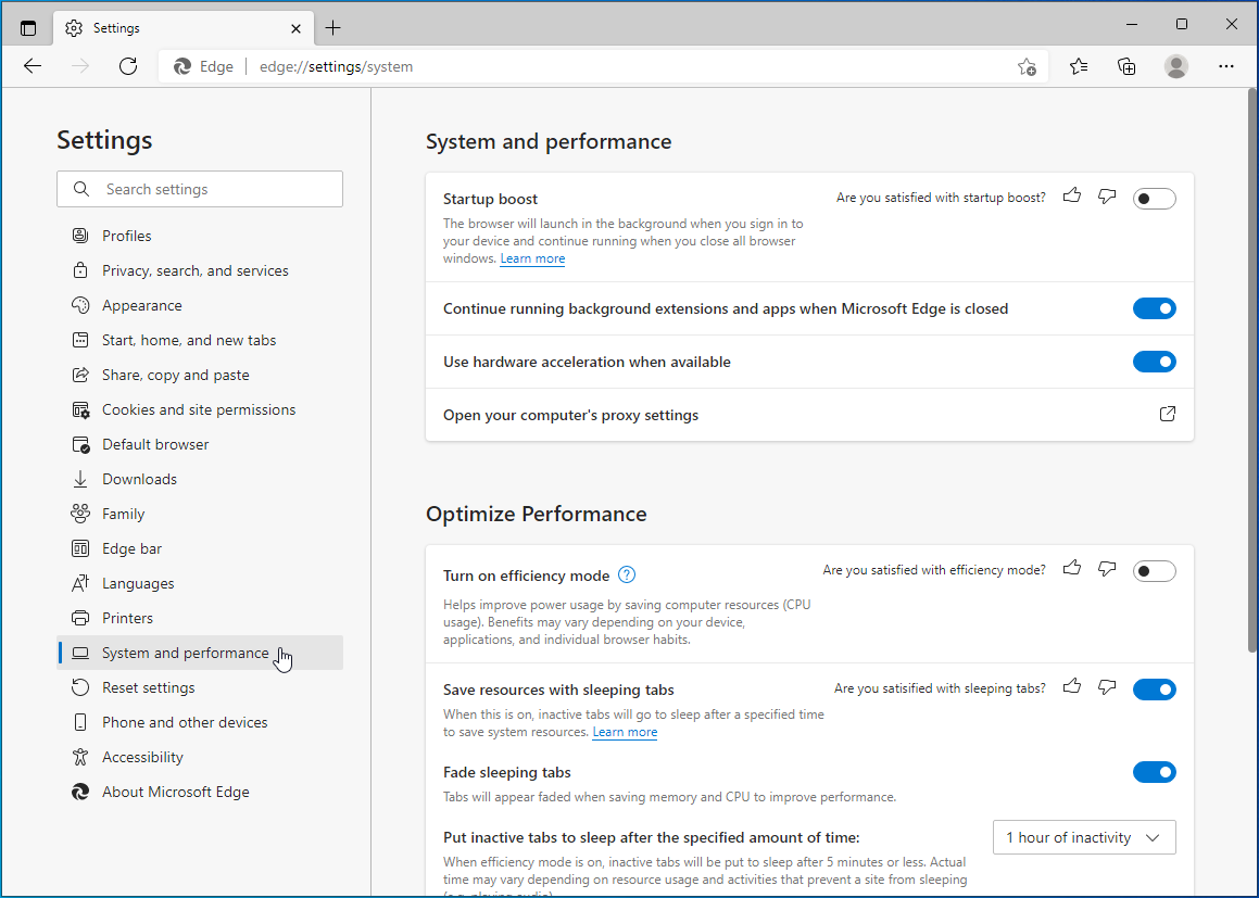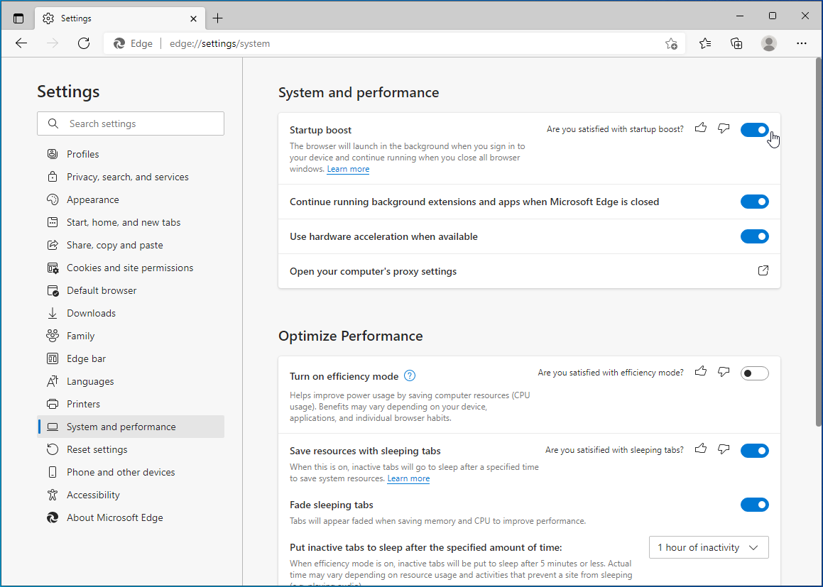 Once done, follow these steps to enable or disable Startup Boost in Edge: