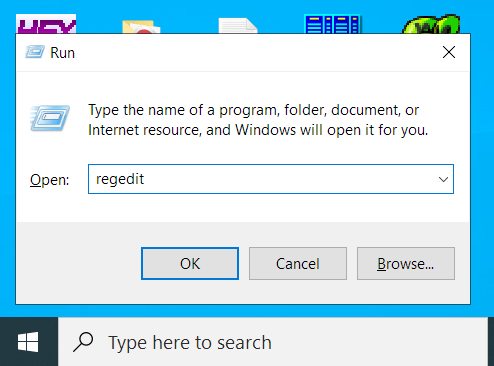 - Press the Win + R shortcut to open the Run dialog box and type in “regedit” (without quotes).