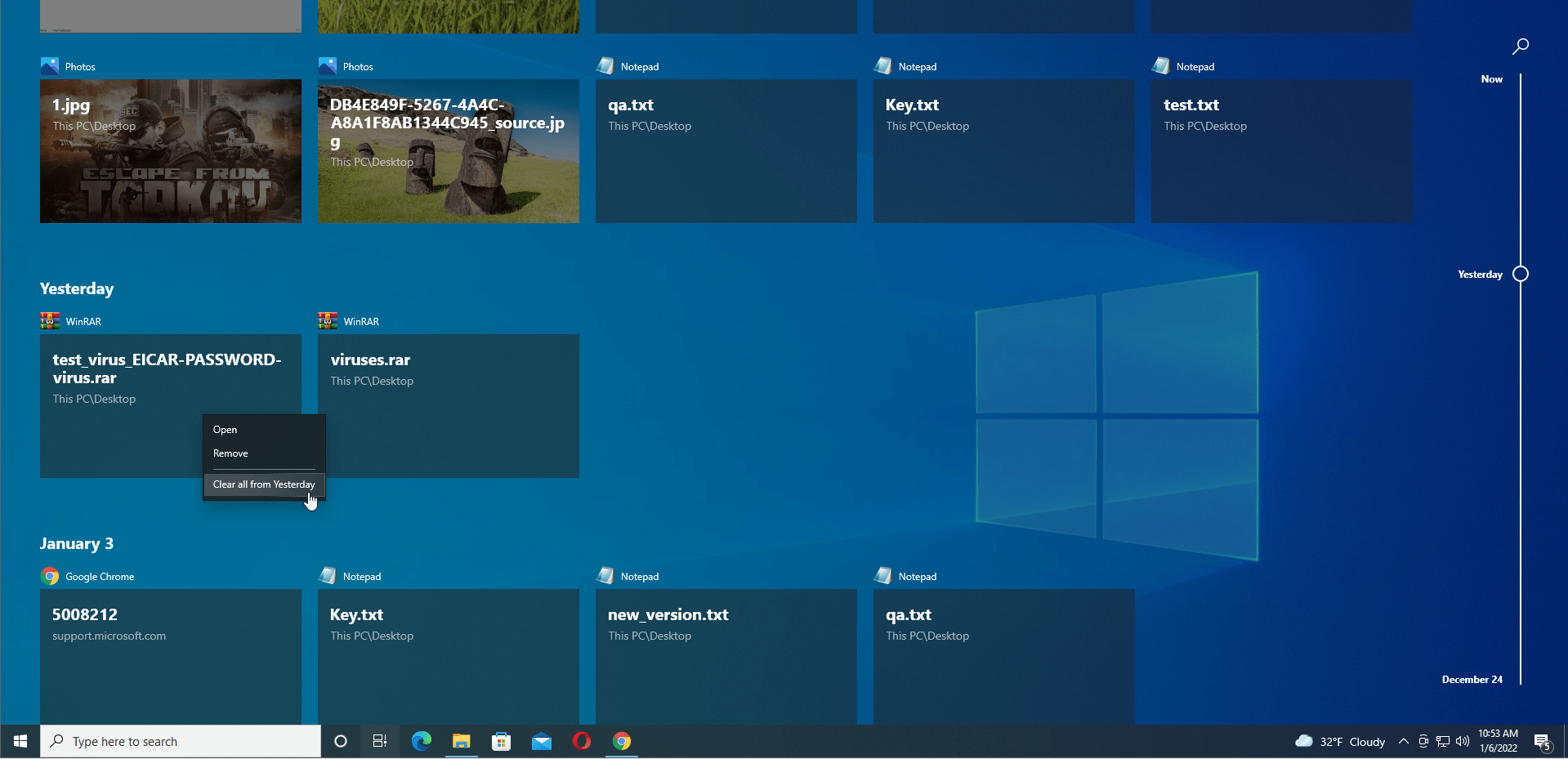 The Windows 10 Timeline stores a history of your activities on all devices connected to your Microsoft account for the last 30 days. The feature is said to improve your workflow by allowing you to quickly resume work from where you left off. It also makes recently accessed files easier to find.