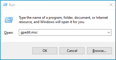 - In the “Run” dialog box, type gpedit.msc and press “Enter” to bring up the Local Group Policy Editor console.