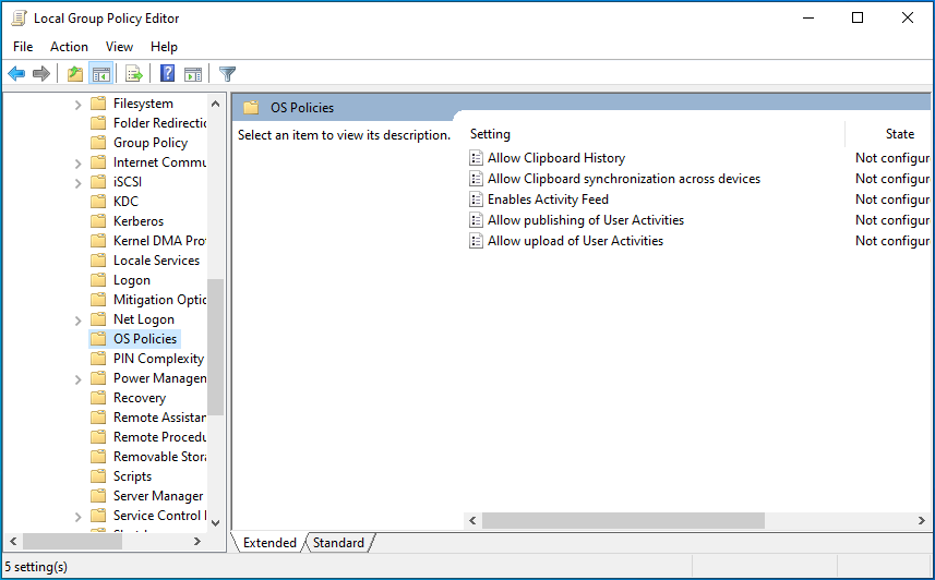 - Browse to this location: Computer Configuration > Administrative Templates > System > OS Policies.