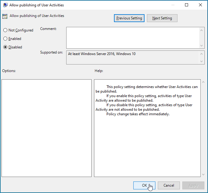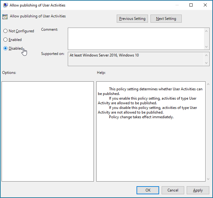 Disable Collecting Activity History in Windows 10 Using Group Policy