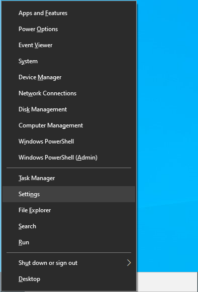 - Open the “Settings” app using the Win + X keyboard shortcut and select “Settings”.