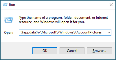 - Now, copy and paste this command line and hit the Enter key on your keyboard: %appdata%\\Microsoft\\Windows\\AccountPictures.