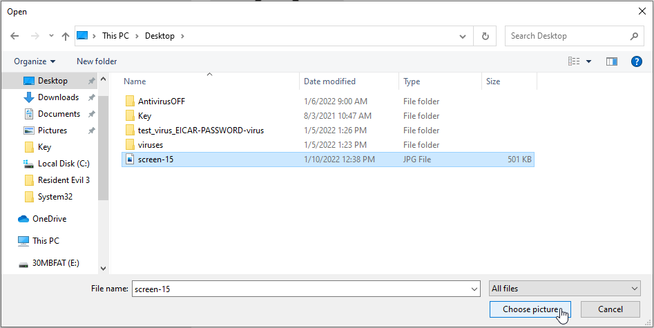 - Locate the file that you wish to use as your profile picture and then choose the picture.