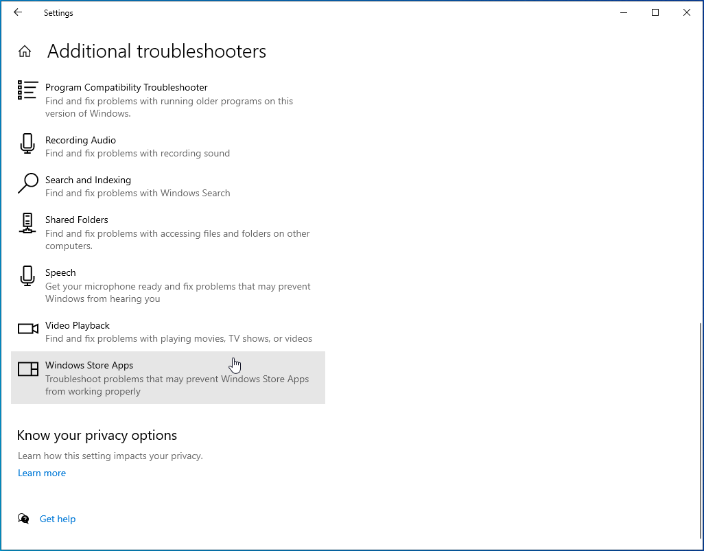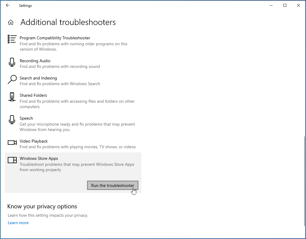 Solution 4: Use the Windows Store Apps Troubleshooter