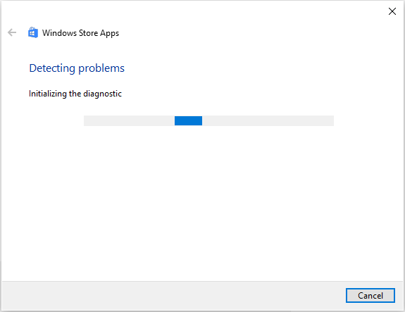 - Wait while the Windows Store Apps Troubleshooter is scanning your system.