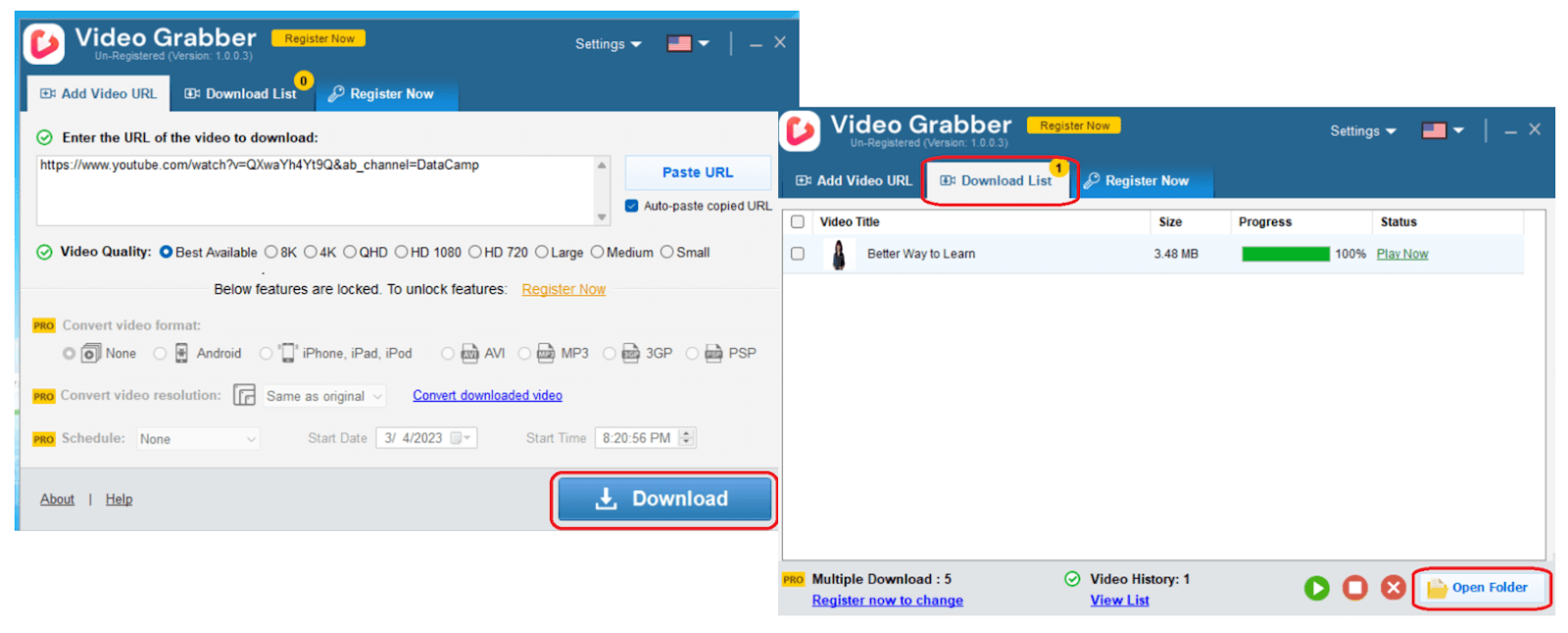 Then there is the download schedule feature. With this feature, you can set Video Grabber to download videos for you at a fixed date and time. This automation feature was designed to increase user convenience with video downloads and save time. Therefore, you would not have to sit in front of your computer waiting for a video to be available before attempting to download. You can just program Video Grabber to grab the video for you.