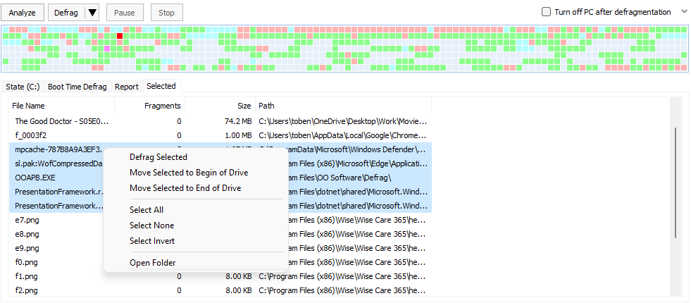 - Subsequent defrags target frequently used files, thus minimizing the workload on the disk
